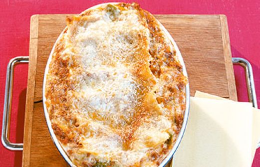 Lasagne Zutaten 2 Gemüsezwiebeln 3 Knoblauchzehen 3 EL Olivenöl 750 g gemischtes Hackfleisch 1 Dose geschälte Tomaten (800 g Inhalt) 1 Packung passierte Tomaten (500 g Inhalt) 150 g Tomaten-Chilisauce (z.B. Texicana-Salsa-Sauce) 3 TL Steinpilzhefebrühepaste (ersatzweise Gemüseb [...]