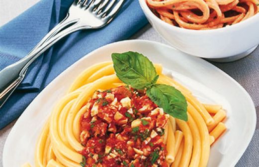 Makkaroni mit Tomaten-Mandel-Sauce Zutaten 250 g Makkaroni Salz 200 g reife Tomaten 1/2 Bund Basilikum 1-2 Knoblauchzehen 40 g gehäutete Mandeln 1 EL Olivenöl Pfeffer guk:similarity-keywords=""> 250 g Makkaroni , Salz , 200 g reife Tomaten , 1/2 Bund [...]