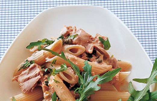 Penne mit Tunfisch und Rucola Zutaten 200 g Penne (ersatzweise andere kurze Nudeln) Salz 1/2 Bund Rucola 2 Knoblauchzehen 2 Frühlingszwiebeln 1 EL Olivenöl 2 EL Noilly Prat nach Belieben (ersatzweise Martini) 1 Dose Tunfisch im eigenen Saft (150 g Inhalt) 2 TL Kapern 50 g Sahn [...]