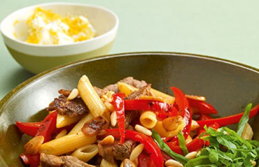 Penne mit Lamm, Paprika und Ziegenkäse Zutaten 1/2 Bio-Zitrone 4 EL Olivenöl 100 g Ziegenfrischkäse 200 g Penne Salz 200 g Lammfilet oder -keule ohne Knochen 2 Knoblauchzehen 1 kleine rote Paprikaschote 50 ml trockener Weißwein oder Gemüsebrühe Pfeffer 1 EL Pinienkerne 4 [...]