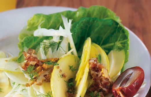 Fenchelsalat mit Datteln Zutaten 6 Datteln (frisch oder getrocknet) 1 Zitrone 3 EL Öl Salz Pfeffer 2 Fenchelknollen (ca. 400 g) 8 Walnusshälften 2 Äpfel 8 Salatblätter (z. B. Radicchio oder Romanasalat) guk:similarity-keywords=""> 6 Datteln (frisch oder getrocknet) , [...]