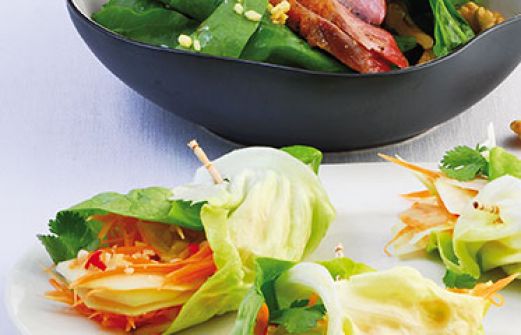 Papaya-Salat Zutaten 1 kleine grüne Papaya (aus dem Asienladen) 1-2 frische rote Chilischoten 2-4 EL vietnamesische Fischsauce (Nuoc Mam; Asienladen) Saft von 1 Limette 1 TL Zucker 80 g ungesalzene Erdnusskerne 3 Möhren 1/2 Bund Koriandergrün 1 kleiner Kopfsalat guk:simila [...]