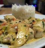 Hähnchenwok mit Quitten und Möhren Zutaten 150 g Hähnchenbrustfilet 50 g Scharlotten 20 g frischer Ingwer 1/2 Bund glatte Petersilie 400 g Bundmöhren 1 Quitte (ca. 300 g) 4 TL Rapsöl Salz schwarzer Pfeffer aus der Mühle 1/2 TL Chiliflakes 1 Msp. gemahlener Piment 1 Msp. Z [...]