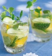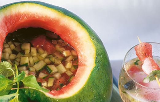Melonen-Gurken-Bowle Zutaten 1 große Wassermelone 1/2 Salatgurke Saft von 1 Zitrone 1 EL Gin 1 EL trockener Wermut (z. B. Noilly Prat) 1 Msp. Zwiebelpulver schwarzer Pfeffer 1/2 TL gehackte Zitronenmelisse 1/2 TL gehackte Minzeblätter 1/2 l trockener Weißwein 1 Flasche eiskal [...]