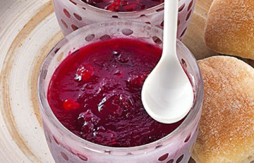 Rote-Bete-Cranberry-Konfitüre Zutaten 500 g Rote Beten 2 Sternanis 500 g frische Cranberries (ersatzweise Johannisbeeren) 50 g getrocknete Cranberries 100 ml Holundersaft (ersatzweise Johannisbeersaft) 250 g Gelierzucker 3:1 guk:similarity-keywords=""> 500 g Rote Beten , [...]
