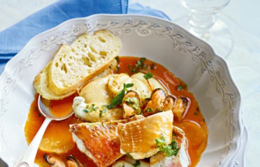 Bouillabaisse mit Rouille Zutaten ca. 1,8 kg Mittelmeerfische (z. B. Rotbarben, Seeteufel, Drachenkopf, Knurrhahn, Petersfisch – vom Fischhändler filetieren lassen, Köpfe und Gräten mitnehmen!) 2 große Zwiebeln 5 Knoblauchzehen 2 kleine Fenchelknollen 1 große Möhre 2 Stangen Stau [...]