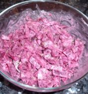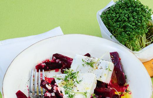 Rote-Bete-Salat mit Meerrettich-Terrine Zutaten 2 Blatt weiße Gelatine 200 g Sahne 100 g Frischkäse 100 g Crème fraîche 100 g Sahnemeerrettich (aus dem Glas) 1 Beet Kresse Salz Balsamico bianco 2 TL Sonnenblumenöl 500 g Rote Bete 1 Zwiebel 3 EL Balsamico bianco 1 EL Oli [...]