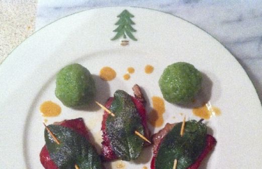 Saltimbocca vom Reh Zutaten 250 g Rehkeule (flaches Stück) 80 g Hirschschinken 16 Salbeiblätter Wildgewürz 40 g Butter --------- Marsala-Wacholder-Sauce: 1 Schalotte, feingeschnitten 20 g Butter 50 ml Marsala (1) 350 ml Wildfond 100 ml Marsala (2) 12 Wacholderbeeren 150 ml [...]