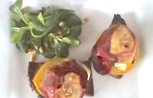 Crottins mit Speck, Mango und Feldsalat Zutaten 2 Crottins de Chavignol 4 Scheiben Bauernbrot 4 Scheiben Mango (1/2 Mango) 4 schmale, lange Scheiben mageren Speck 1 El Olivenöl 1 El Butter 4 Tl Mostarda purée di arance ------- 200 g Feldsalat 2 El Pinienkerne ------- 3 El Oli [...]