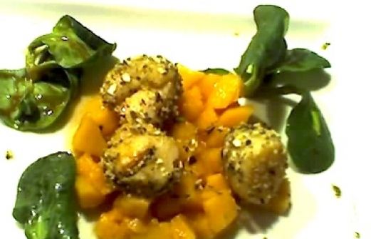 Jakobsmuscheln auf Quittenchutney Zutaten 18 Jakobsmuscheln 2 El Butter 1/2 l Olivenöl 2 Knoblauchzehen, geschält 2 Thymianzweige Salz + Pfeffer 80 g Wasabi-Kürbiskerne, gemahlen -------- 12 El Quittenchutney Feldsalat guk:similarity-keywords=""> 18 Jakobsmuscheln , [...]