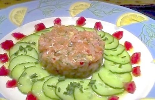 Lachstatar Zutaten 300 g frisches Lachsfilet 1 Schalotte, ganz fein geschnitten 1/2 Peperoncino (nicht so scharf!), rot, ganz fein geschnitten 1 El Ingwer, ganz feine Würfelchen 1 El geriebene Zitronenschale Fleur de sel + Pfeffer 1 Prise Curry 2-3 El Olivenöl 2 El Schnittlauch i [...]