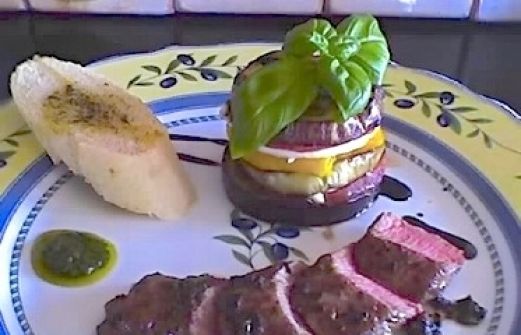 Lammrücken mit Auberginentörtchen Zutaten 6 Scheiben Auberginen, 5 mm dick 2 halbe gelbe Paprika, enthäutet 4 Scheiben Fleischtomate, enthäutet und entkernt 4 Scheiben Mozzarella di bufala Basilikumblätter 4 El schwarze Tapenade Salz + Pfeffer Crema di balsamico 2 Tl Basilikum in [...]