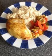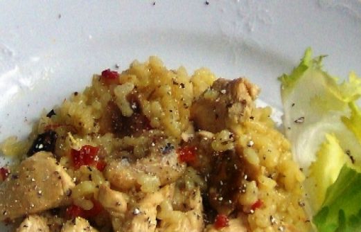 Champignon-Hähnchen-Reis-1-Topf Zutaten 300 gr. Hähnchenbrust 300 gr. Champignons 2 EL Tomatenessig 0,7 l Hühnerbrühe, wenn möglich selbstgemacht 120 gr. Paellareis 3 EL Tomaten Chips oder getrockenete Tomaten feingewürfelt 1 TL Kümmel 1 EL Gewürzmischung mediterran s.u. 3 EL S [...]