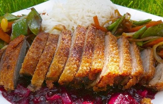 Knusprige Ente mit Pflaumensoße Zutaten 700 Gramm Entenbrust (nicht vorgekocht) 600 Gramm Blutpflaumen oder andere dunkle Pflaumen 80 Milliliter Pflaumenwein 2 mittelgroße rote Zwiebeln 2 Esslöffel Reiswein, ersatzweise leichten Weißwein 4 Esslöffel Sojasoße 2 gestrichene Teelöffel [...]
