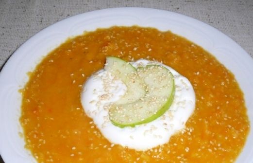 Apfel-Möhren-Suppe mit gerösteten Sesamsamen Zutaten 300 Gramm Möhren 3 kleine säuerliche Äpfel 1 Stange Staudensellerie 3 Esslöffel Zwiebeln, klein gewürfelt 1 Esslöffel Sonnenblumenöl 1 Teelöffel Mehl 800 Milliliter Hühnerbrühe oder Gemüsebrühe 1/2 Teelöffel getrocknete Salbei [...]