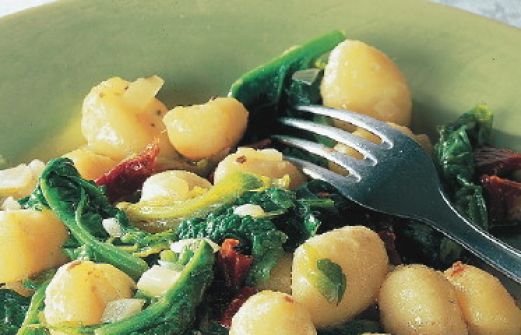 Gnocchi mit Blattspinat Zutaten 500 g Blattspinat 1 Zwiebel (50 g) 50 g getrocknete Tomaten (in Öl) 400 g frische Gnocchi Salz 1 Esslöffel Olivenöl grober Pfeffer guk:similarity-keywords=""> 500 g Blattspinat , 1 Zwiebel (50 g) , 50 g getrocknete , T [...]