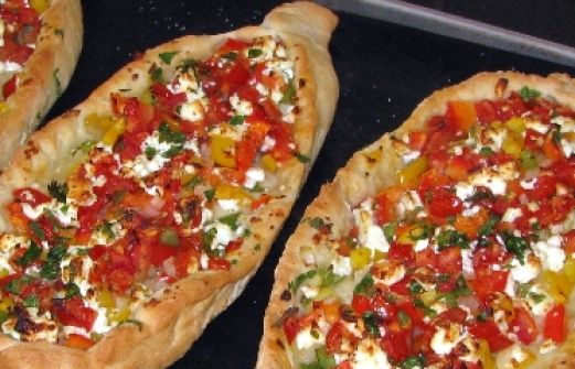 Fladenbrot (Pide) mit Gemüse und Feta Zutaten 20 g Hefe 1/2 Teel. Zucker 150 ml lauwarmes Wasser 400 g Mehl 1/2 Teel. Salz 2 Essl. Naturjoghurt 3 Essl. Olivenöl 3 Tomaten 2 Paprikaschoten (rot, gelb oder grün) 2 Zwiebeln 1 Bund Petersilie 200 g Feta Salz, Pfeffer, Pizzage [...]
