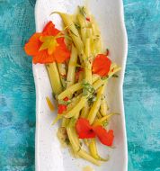Kräuter-Blüten-Essig Zutaten 1 Handvoll Borretschblüten 1 Handvoll Speisechrysanthemen 2 Handvoll Lavendelblüten 1 Handvoll Zitronenmelisse 1 Handvoll Thymian 1 Handvoll Zitronenthymian 1 Handvoll Pfefferminze 5 Zweige Rosmarin 1 Liter Weißweinessig guk:similarity-keywords=" [...]