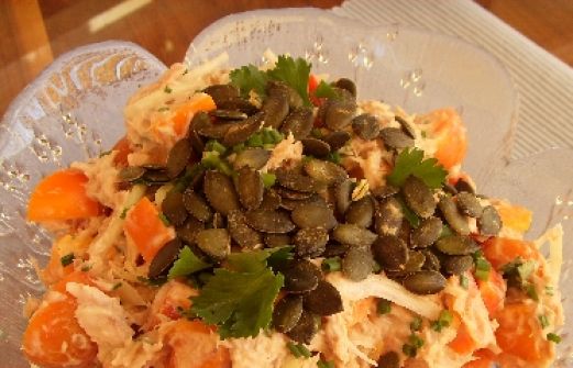 Thunfischsalat mit Joghurt-Kräuter-Dressing Zutaten 2 EL Kerne nach Belieben (z.B. Walnusskerne, Sonnenblumenkerne, Kürbiskerne...) 1 rote Paprikaschote 1 gelbe Paprikaschote 250 g Cocktailtomaten 1 Zwiebel 250 g Joghurt 2 TL Senf Salz Pfeffer 1 Prise Zucker Kräuter nach Belie [...]