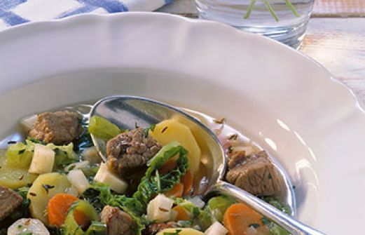 Pichelsteiner Eintopf Zutaten 4 große, fest kochende Kartoffeln je 3 Möhren und Petersilienwurzeln 2 Stangen Lauch je 1/2 Sellerieknolle und 1/2 Kopf Wirsing 2 Zwiebeln 700 g gemischtes Schmorfleisch (z. B. Rinderschulter, Schweinenacken, Lammschulter) 2 EL Schweineschmalz (ersa [...]