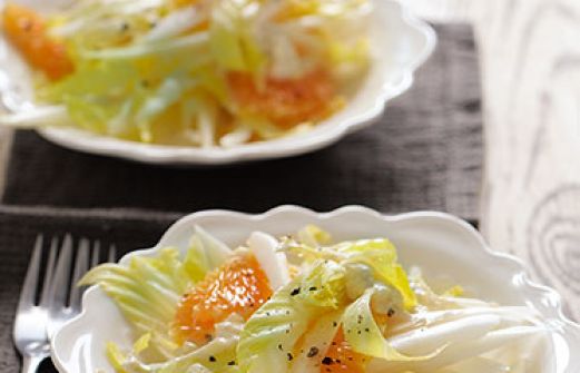 Chicorée-Orangen-Salat Zutaten 150 g frisches Sauerkraut 1 Orange 2-3 Stauden Chicorée (ca. 500 g) 100 g Schmand 5 EL Orangensaft Salz Pfeffer 1 TL grüne Pfefferkörner (aus dem Glas) 1 TL Ingwerpulver guk:similarity-keywords=""> 150 g frisches Sauerkraut , 1 Orange [...]
