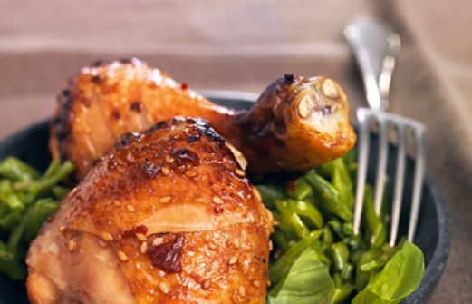 Hähnchen mit Zuckerschotensalat Zutaten 1 TL Sesamsamen 200 ml Apfelsaft 100 ml Orangensaft 1/8 l Sojasauce 3 EL süße Chilisauce 1 EL Honig 300 g Zuckerschoten 1 Bund Basilikum 1 haselnussgroßes Stück Ingwer Saft von 1 Limette 4 Hähnchenschenkel (je etwa 250 g) guk:simi [...]