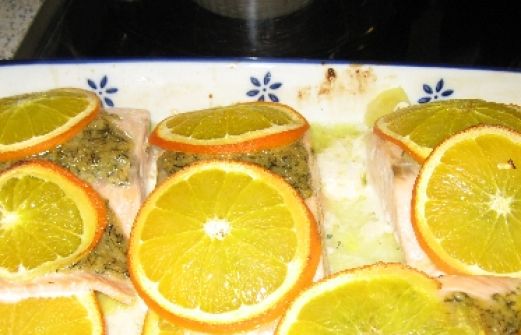 Lachs im Orangenbett Zutaten 500 ml Gemüsefonds 2 Bio-Orangen 50 g weiche Butter 1/2 Bund gehackten Dill 2 EL körnigen Senf 1 EL Dijon-Senf 2 EL flüssigen Honig 4 Tranchen Lachsfilet (Mittelstück ohne Haut undGräten) 200 ml Sahne 200 ml trockenen Weißwein 1 Stück frischer Ingwe [...]