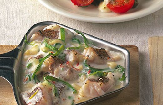 Ingwer-Chili-Fisch mit Kokosmilch Zutaten 600 g Fischfilets (z. B. Rotbarsch oder Seelachs oder Lachsforelle) 1 Bio-Limette 2 rote Chilischoten 1 Stück frischer Ingwer (etwa 3 cm) 1 dünne Stange Lauch 100 g Butterkäse oder junger Gouda 250 g Kokosmilch Salz Pfeffer, frisch [...]