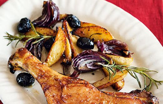 Entenkeulen vom Blech Zutaten 1 1/2 EL Olivenöl 4 Entenkeulen (à ca. 300 g) 650 g vorwiegend festkochende Kartoffeln 2 rote Zwiebeln 2-3 Zweige Rosmarin 1 EL flüssiger Honig 1 EL Zitronensaft Salz Pfeffer 1 Knoblauchzehe 3-4 EL schwarze Oliven guk:similarity-keywords= [...]