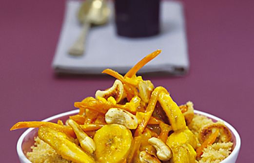 Hähnchenbrust in Bananen-Buttermilch mit Couscous Zutaten 300 g Möhren 1 Zwiebel 1 Knoblauchzehe 800 g Hähnchenbrustfilet 80 g Cashewkerne 4 EL Öl 2 TL Currypulver 250 g Couscous ½ TL Kurkumapulver (ersatzweise Currypulver) 800 ml warme Gemüsebrühe (Instant) 300 ml Bananen- [...]