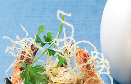 Frittierte Garnelen im Nudelnest Zutaten 12 rohe ungeschälte Riesengarnelenschwänze in der Schale (ca. 150 g) 2 EL Reiswein Salz Pfeffer 1 TL Sesamöl 60 g Glasnudeln 4 Stängel Koriandergrün 2 EL Mehl 1 Ei 1 l Öl zum Frittieren guk:similarity-keywords=""> 12 rohe unges [...]
