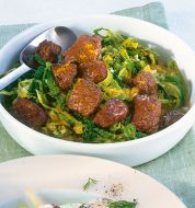 Glasnudeln mit Rindfleisch Zutaten 150 g Glasnudeln 2 EL geschälte Sesamsamen 350 g Rinderlende 1 Bund Frühlingszwiebeln 1 kleiner Chinakohl 2 rote Paprikaschoten 2 Knoblauchzehen 4 EL Öl Salz Pfeffer 1 EL Sesamöl 1 TL Palm- oder brauner Zucker 4 EL Sojasauce Sambal [...]