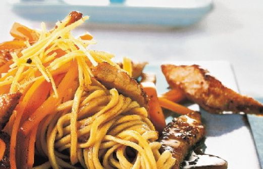 Asia-Nudeln mit Möhren und Schweinefleisch Zutaten 400 g Möhren 20 g Ingwer 4 dünne Schweineschnitzel (á 100 g) 4 EL Öl Salz Pfeffer 80 ml trockener Sherry 1/4 l Brühe 3 EL Sojasoße 200 g Mie-Nudeln 1 EL Speisestärke guk:similarity-keywords=""> 400 g Möhren , 2 [...]