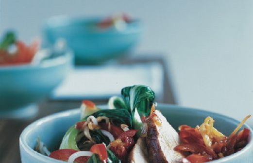 Sesam-Hähnchen mit Paksoi und Sprossen Zutaten 4 Hähnchenbrustfilets (ca. 600 g) 2 EL Sojasoße 2 TL Sesamöl grober Pfeffer 2 Knoblauchzehen 1 Stück frischer Ingwer (20 g) 1 kleine Chilischote 4 Paksoi (á ca. 250 g, ersatzweise Mangold) 250 g Mungobohnensprossen, 2 rote Papri [...]