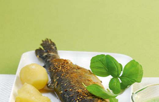 Forellen mit Erbsen-Basilikum-Sauce Zutaten 750 g kleine Kartoffeln Salz 4 küchenfertige Forellen (à ca. 300 g) Pfeffer 2 EL Mehl 150 g TK-Erbsen 6 EL Butter 4 Schalotten ¼ l Gemüsefond oder -brühe 125 g Sahne 1 Bund Basilikum guk:similarity-keywords=""> 750 g [...]