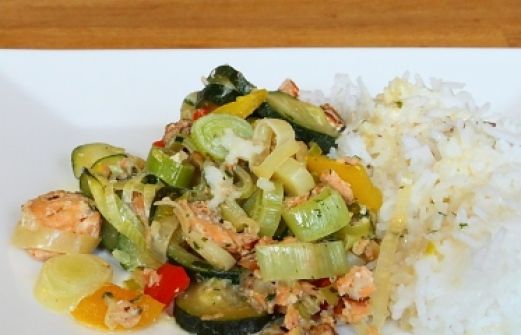 Juli Lachs mit Reis Zutaten 250 g Lachsfilet (TK) 2 Stangen Lauch 1 Zucchini 1 Paprika (gelb) 1 Paprika (rot) 1/2 Gemüsezwiebel 200 g Sahne 250 g Basmati Reis Weißwein Erdussöl Kräuter (nach Geschmack) Salz Pfeffer guk:similarity-keywords=""> 250 g Lachsfilet (TK) [...]