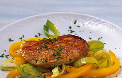 Putenschnitzel mit Lauch und Paprika Zutaten 1 dicke oder 2 kleine Lauchstangen (200 g) 1 gelbe Paprikaschote 300 g Putenschnitzel Salz Pfeffer 1 EL Rapsöl 1 TL getrockneter Majoran Cayennepfeffer 1 EL saure Sahne 2 EL gehackte Petersilie guk:similarity-keywords=""> [...]