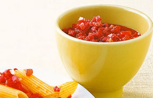 Tomaten-Speck-Sauce Zutaten 100 g durchwachsener Speck oder Pancetta 1 Zwiebel 2 getrocknete Chilischoten 600 g Tomaten (oder 1 1/2 kleine Dosen geschälte Tomaten) 2 EL Olivenöl 1 EL Tomatenmark Salz Pfeffer guk:similarity-keywords=""> 100 g durchwachsener Speck oder [...]