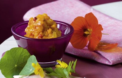 Kürbis-Ingwer-Chutney Zutaten 2 Zwiebeln 1,2 kg Hokkaidokürbis (ersatzweise Möhren) 100 g Ingwer 2 Knoblauchzehen 200 g Zucker 1 TL Chiliflocken 2 EL Öl 500 ml Orangensaft (frisch gepresst oder aus der Flasche) Saft von 2 Zitronen (80 ml) 2 EL rosa Pfefferkörner Salz guk [...]
