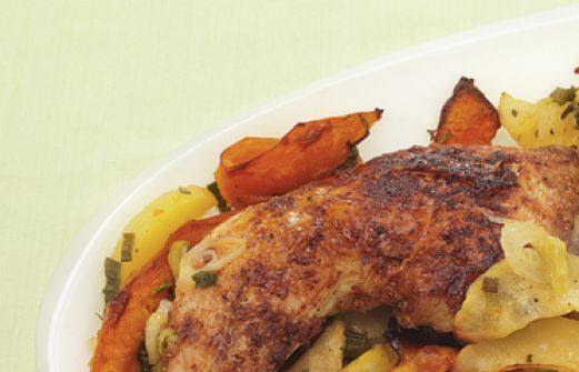 Hähnchenkeulen auf Apfel-Kürbis-Gratin Zutaten 1 Stück Kürbis (etwa 1 1/2 kg) 6 Äpfel 1 Bund Frühlingszwiebeln 4 Zweige Rosmarin Salz Pfeffer 8 EL Olivenöl 1 große Bio-Zitrone 6 Knoblauchzehen 2 EL süßer Senf 8 Hähnchenkeulen mit Schulterteil (je etwa 300 g) guk:similar [...]