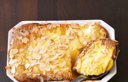 Aprikosen-Quark-Auflauf Zutaten 1 Bio-Zitrone 2 Eier (Größe L), Salz 50 g weiche Butter 30 g + 2 EL Zucker 1/2 Päckchen Vanillezucker 250 g Quark, 20 % Fett 40 g Speisestärke 250 g Aprikosen (aus der Dose; abgetropft) 4 EL Mandelblättchen Auflaufform (ca. 20 x 30 cm); Fett fü [...]