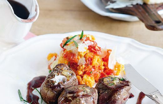 Rehmedaillons mit Rosmarin-Tomaten-Polenta Zutaten 3 Zweige Rosmarin 2 Knoblauchzehen 6 EL Olivenöl 12 Rehmedaillons (je ca. 60 g) Pfeffer Salz 200 g Instant-Polenta 2 Strauchtomaten 1 EL Tomatenmark ca. 30 g Parmesan (am Stück) guk:similarity-keywords=""> 3 Zweige [...]