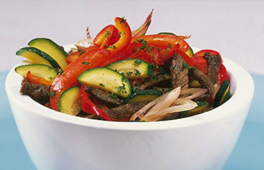 Rinderfilet mit Zucchini und Paprikastreifen Zutaten 250 g Rinderfiletsteak Salz Pfeffer 2 Schalotten 2 rote Paprikaschoten 2 mittelgroße Zucchini (zusammen etwa 500 g) 2 EL Rapsöl 2 EL weißer Aceto balsamico 2 EL gehackte Petersilie guk:similarity-keywords=""> 250 [...]
