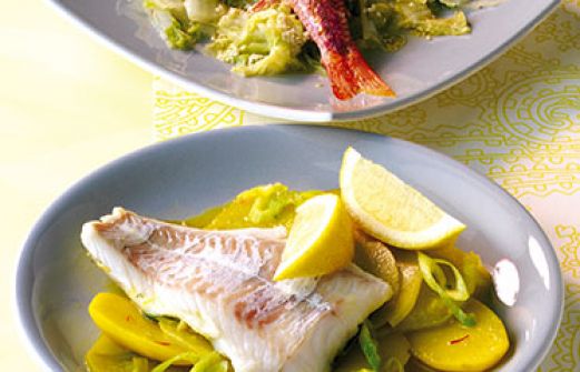 Kabeljau auf Kartoffeln mit Safran Zutaten 1 Frühlingszwiebel 400 g vorwiegend fest kochende Kartoffeln 1 Kohlrabi 1 TL Butter Salz 1 Msp. Safranfäden 300 g Kabeljau-Rückenfilet 1 TL Zitronensaft Zitronenspalten zum Garnieren guk:similarity-keywords=""> 1 Frühling [...]