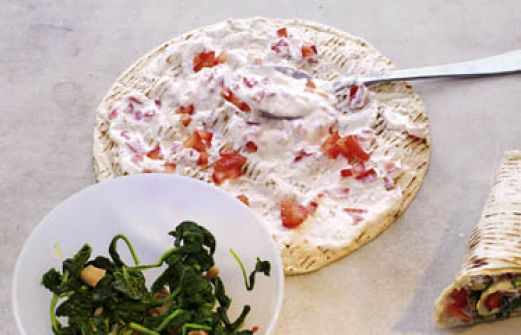 Indian-Wrap mit Cashewnuss-Spinat Zutaten 300 g TK-Blattspinat 1 kleine Zwiebel 1 Knoblauchzehe 1 Stück frischer Ingwer (ca. 3 cm) 1 kleine rote Chilischote 1 EL Ghee (ersatzweise neutrales Pflanzenöl) je 3/4 TL gemahlener Koriander und Kreuzkümmel Salz 2 Tomaten 2 EL crem [...]