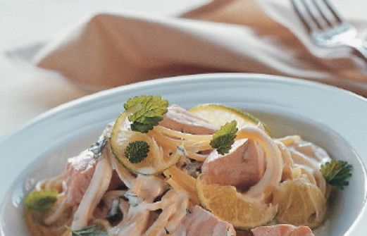 Spaghetti mit Limetten-Lachs Zutaten 400 g Spaghetti Salz 300 g Lachsfilet Pfeffer abgeriebene Schale und Saft von 1 unbehandelten Limette 1 Brühe 200 g Sahne 1 Bund Zitronenmelisse guk:similarity-keywords=""> 400 g Spaghetti , Salz , 300 g Lachsfilet , [...]
