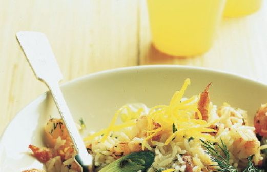 Zitronenreis mit Garnelen Zutaten 1 Packung tiefgefrorene Tiefseegarnelen (340 g, geschält, gekocht) 300 g Langkornreis Salz 4 Bund Lauchzwiebeln (500 g) 4 EL Öl Pfeffer Saft und Schale von 1 unbehandelten Zitrone 1 EL Dill guk:similarity-keywords=""> 1 Packung tiefgefr [...]