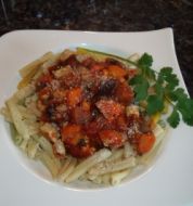 Penne mit Auberginen Zutaten 2 Auberginen (500 g) 1/2 l Olivenöl 350 g Penne Salz 1,25 kg Fleischtomaten 2 Knoblauchzehen Pfeffer 1 Prise Zucker 150 g Mozzarella 1 Bund Basilikum guk:similarity-keywords=""> 2 Auberginen (500 g) , 1/2 l Olivenöl , 350 g [...]