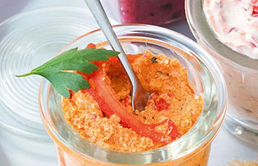Paprika-Tofu-Dip Zutaten 1 kleine rote Paprikaschote 4 Stiele glatte Petersilie 200 g Tofu (natur) 75 g Ajvar (Paprikamus aus dem Glas) Salz schwarzer Pfeffer aus der Mühle 1 TL edelsüßes Paprikapulver 1/4 - 1/2 TL Cayennepfeffer 1 Spritzer Zitronensaft guk:similarity-keyw [...]