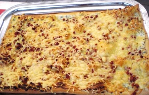 Menge Zutat 1 St Pizzateig von der Rolle (Kühlregal) 150 g Ziegenfrischkäse 1 Bund Schnittlauch 125 g rohe Schinkenwürfel 150 g geriebener Käse [...]